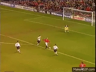 1996年12月21日,坎通纳急转弯,击败了三名桑德兰球员,加上布莱恩·麦克克莱尔,将球几乎以慢动作切过守门员的头顶。庆祝活动,胸口鼓鼓,双手伸出,沐浴在老特拉福德的崇拜中,几乎与进球本身一样具有标志性。
